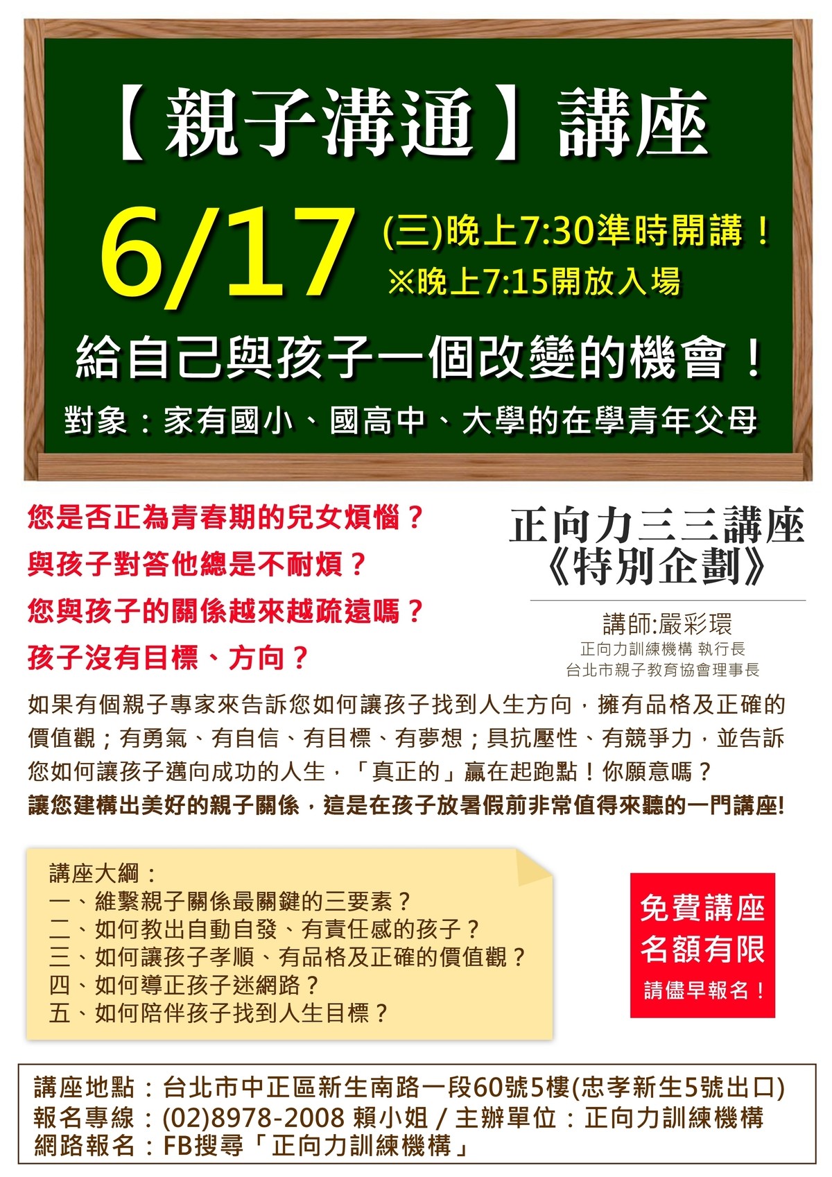 【免費 親子溝通講座】給自己與孩子一個改變的機會!